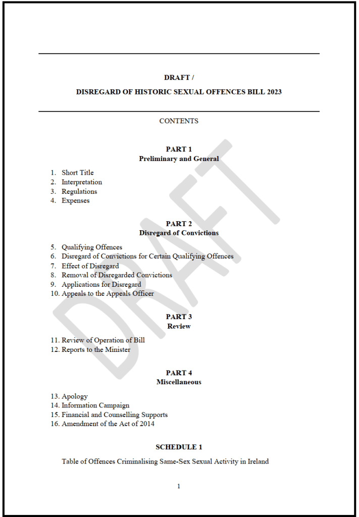 Barristers Céile Varley and Cillian Bracken in association with Gay Project Cork, LGBT Disregard, Clifford Chance and A&L Goodbody, on a pro-bono basis, developed a Draft Bill to provide for a Disregard Scheme. This Draft Bill became the basis for the Bill introduced in July 2025.